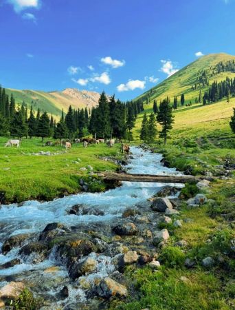 07:00-08:00早上按酒店規(guī)定時(shí)間用餐,提前把行李收拾好辦理好退房,開始今天精彩的旅程,餐后前往空中草原美稱的【那拉提大草原】,乘區(qū)間車(森林公園區(qū)間車已含)到達(dá)景區(qū),草原上澗溪交流,河川縱橫,清泉噴涌,云杉茂密,鮮花盛開,芳草如茵,氈房錯(cuò)落,清風(fēng)徐來,牧歌揚(yáng)抑,牧群云移;哈薩克牧歌,片片牧群,盛裝女子,剽悍的騎手,為壯美的大草原增添了盎然生機(jī),喝奶茶,唱牧歌,和當(dāng)?shù)厣贁?shù)民族接觸,感受少數(shù)民族的熱情。晚宿那拉提