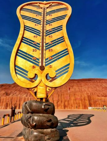 火焰山位于新疆維吾爾自治區(qū)吐魯番市高昌區(qū)312國(guó)道,是國(guó)家AAAA級(jí)景區(qū)和國(guó)家地質(zhì)公園,于2018年4月13日入圍“神奇西北100景”?;鹧嫔綄俚湫偷拇箨懶愿珊祷哪畾夂颍潜本?2°在線世界唯一的熱火爐,具有日照長(zhǎng)、氣溫高、晝夜溫差大、降水少、風(fēng)力強(qiáng)等特點(diǎn)。全年平均氣溫為14℃,夏季平均氣溫在30℃
