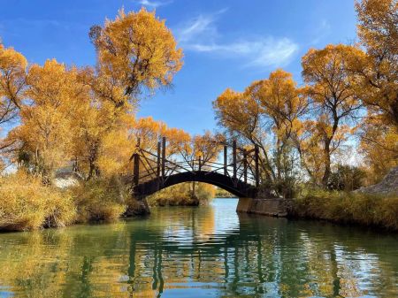 澤普金胡楊國家森林公園位于新疆喀什地區(qū)澤普縣西側(cè),緊靠葉爾羌河畔,是壹處環(huán)境優(yōu)美的沙漠綠洲。-自然景觀:-胡楊林:澤普金胡楊國家森林公園擁有上萬畝的天然胡楊林,胡楊高大挺拔,形態(tài)各異。秋季時(shí),胡楊葉變成金黃色,與藍(lán)天白云和沙漠相互映襯,形成美麗的景色。-水系:公園內(nèi)有葉爾羌河及其支流環(huán)繞,形成了湖泊